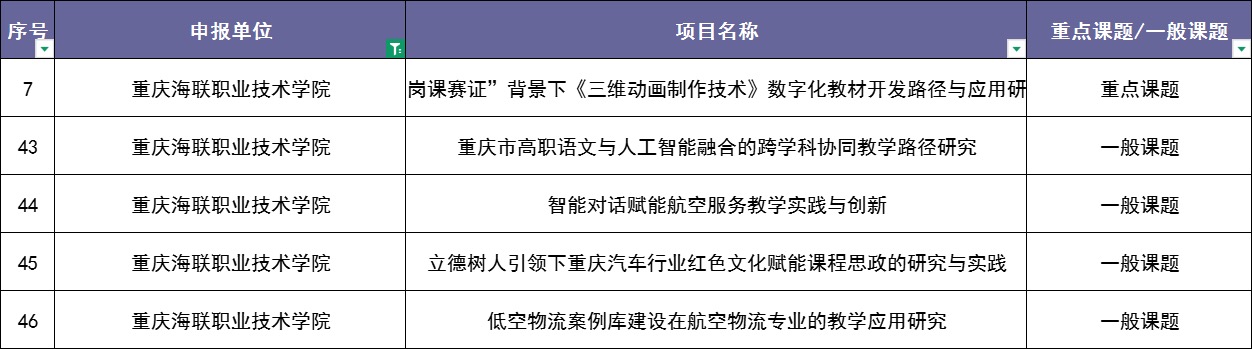 四、2025年重庆市高职研究会课题(已公示):低空物流案例库建设在航空物流专业的教学应用研究。
