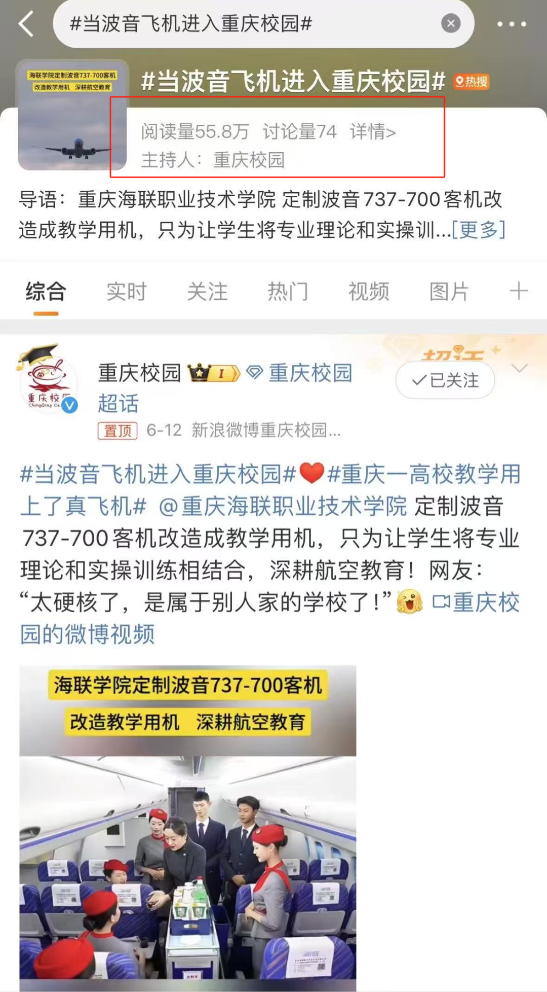 我校作为全国航空特色学校,始终秉持开放融合的办学理念,积极响应政府文化发展号召,凭借国际风貌的建筑特色、现代化设施设备的实训楼,以及师生团队的专业配合与热情支持,学校多次上同城热搜前三,成为众多短剧影视剧组的“优选取景地”,师生也频繁参与各大节目录制。