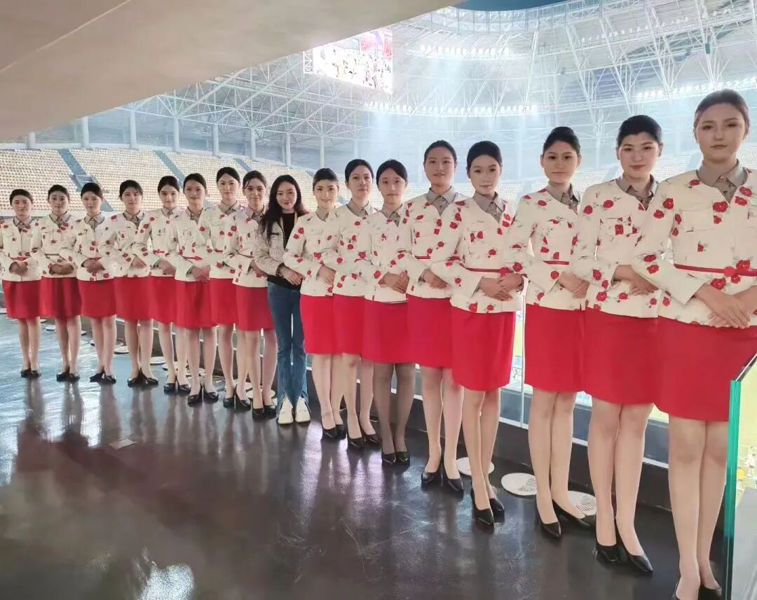 礼仪队员们身着专业的航空制服