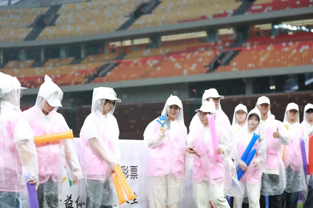 加油团成员们手持加油道具