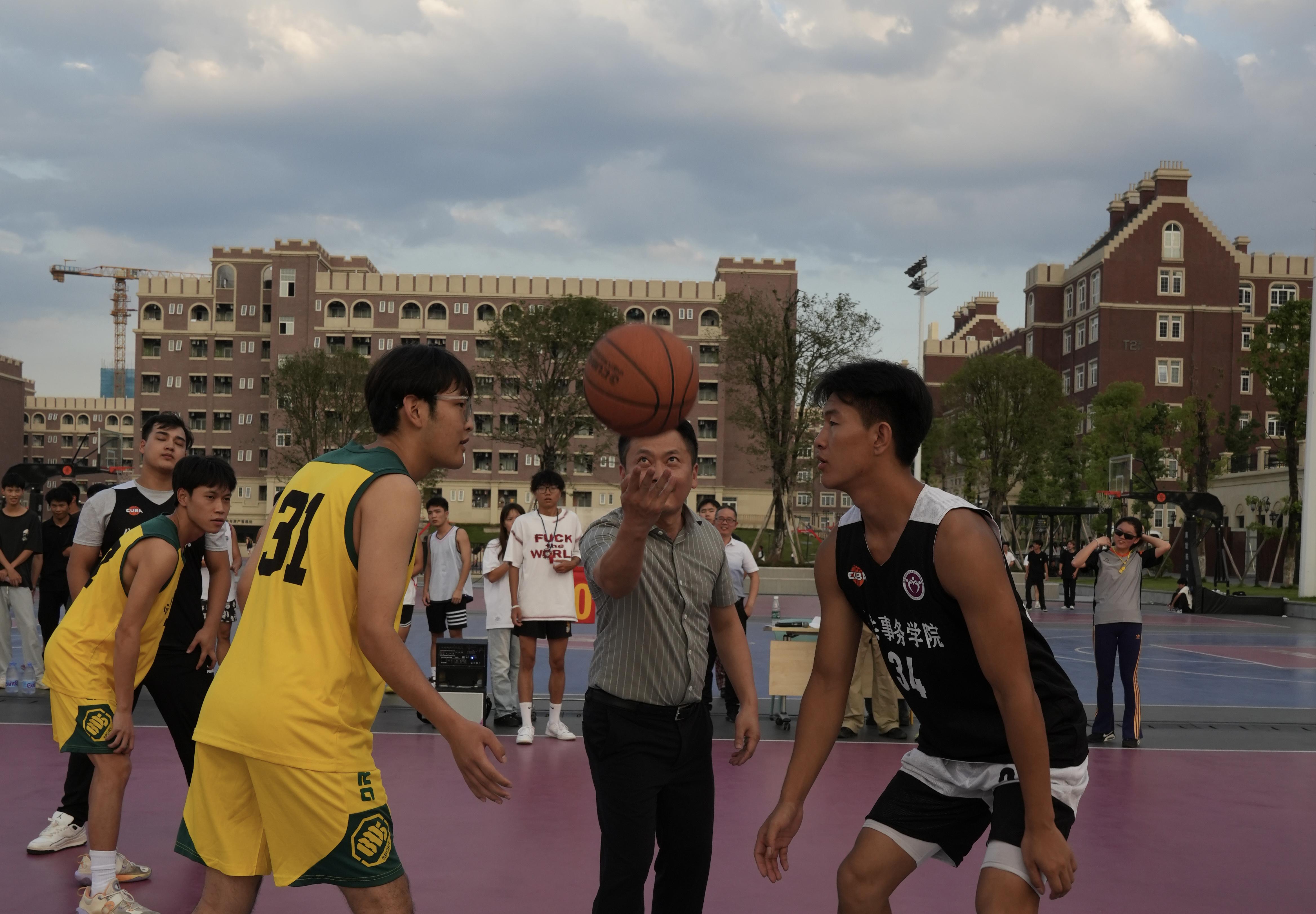 “凌云杯”篮球赛开幕式的压轴环节,开幕式步入高光时刻,张邱院长来到赛场中央,为“凌云杯”篮球赛揭幕战郑重开球。随着篮球划出弧线,赛事的竞技大幕正式拉开,一场青春与热血的较量就此启幕。