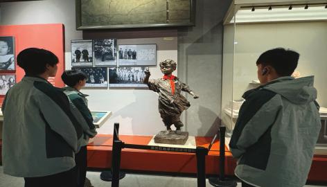 当讲解到小萝卜头的故事时,同学们围在小萝卜头的雕塑旁,认真聆听他短暂却光辉的—生。小萝卜头在恶劣环境下仍坚持学习、传递情报,为革命事业贡献力量,他的勇敢和坚韧深深打动了在场的每—个人。