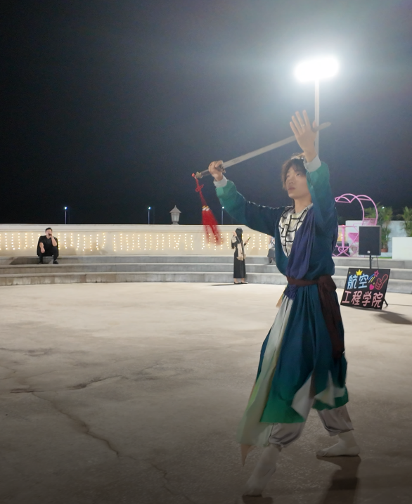 当航院的夜遇上 “秀立方”:这场青春舞台,比晚风更热烈。当下沉广场的灯光亮起时,重庆海联航空工程学院的 “秀立方”,又把夜晚酿成了青春的模样。剑影与歌声,是航院人的 “双面青春”。那晚的舞台边,穿古风襦裙的少年执剑而起 —— 青蓝衣袂随剑势扬起,红穗子在灯光下划出弧线,连晚风都跟着慢了半拍。而几步之外的乐队区,吉他扫弦混着鼓点炸开:主唱握着话筒的手微微泛白,键盘手指尖在琴键上跳得飞快,连架子鼓旁的军绿色身影,都跟着节奏轻晃肩膀。没有 “该是什么样子” 的定义:有人在剑穗里藏着江湖梦,有人在旋律里唱着少年意气,连观众席上举着手机的同学,眼里都映着舞台的光。“秀立方” 的底色:把热爱铺成舞台下沉广场的 live 现场,“秀立方” 从来不是某一种风格的专场:是观众席此起彼伏的 “一波!”;是歌手唱到副歌时,台下突然响起的大合唱,是有人举着荧光棒晃成星海;是今晚执剑的少年收势时,场边爆发出的 “好帅!”,是乐队收尾时,有人喊 “再来一首!”