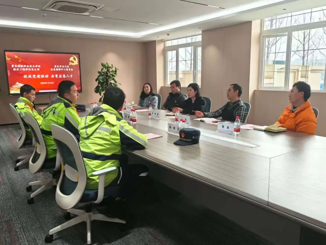 1月16日,学校航空工程学院与永川区应急指挥中心“校政党建联动 共育应急人才”党建共建活动在T2实训楼第三会议室顺利开展。航空工程学院党支部书记颜婵婵、无人机学院副院长张强与永川区应急指挥中心总工程师夏睿、副支队队长蒋攀、分队队长钟传吕等一行3人齐聚一堂,以党建为纽带搭建合作桥梁,推动应急人才培养与行业需求深度对接。