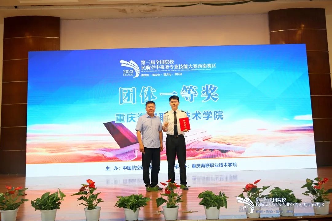 6月10日——12日,第三届全国院校民航空中乘务专业技能大赛西南赛区圆满落幕,经过激烈的角逐,重庆海联职业技术学院参赛队伍荣获一等奖,将代表西南赛区迎战全国总决赛!