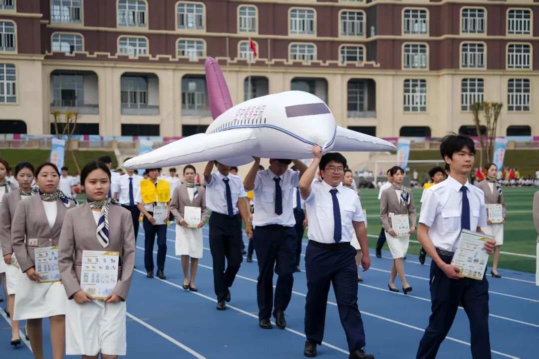 开幕式上,空乘学子步伐整齐、仪态端庄,将专业礼仪素养与优雅气质融入每一个动作,身姿挺拔、精神饱满,尽显航空服务专业风范,成为开幕式上一道靓丽的风景线,充分展现了空中乘务学院的团队凝聚力与良好精神风貌。