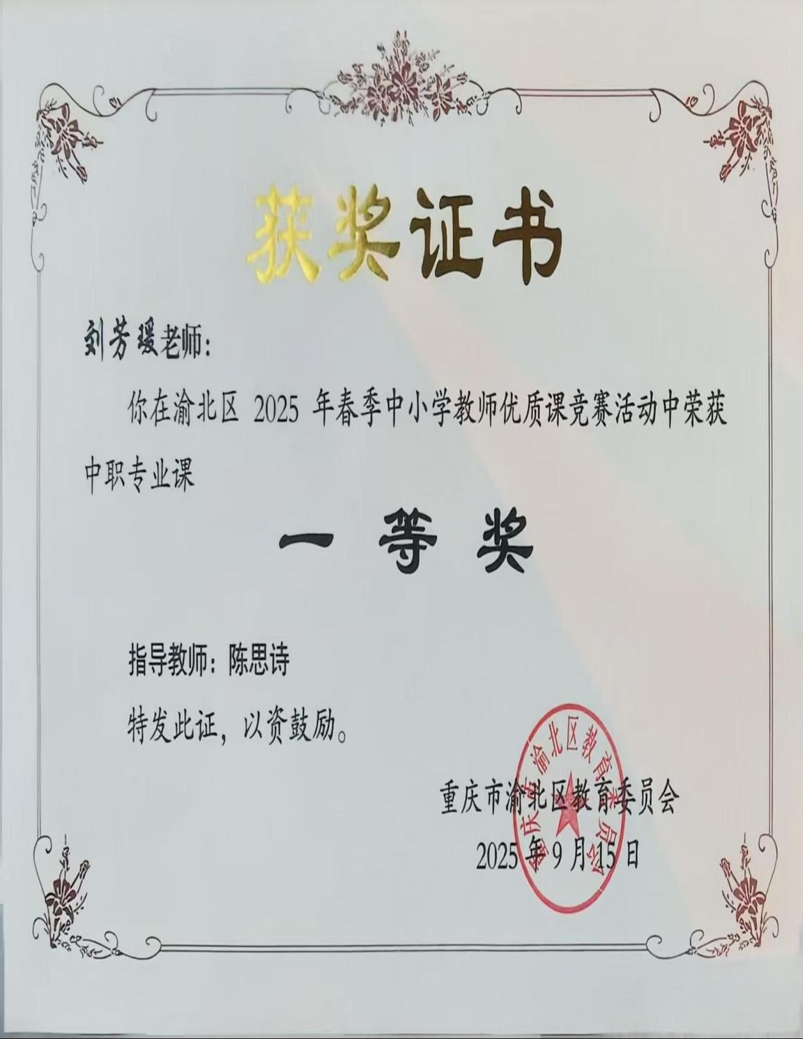 喜报!我院刘芳瑗老师斩获渝北区教师优质课竞赛一等奖