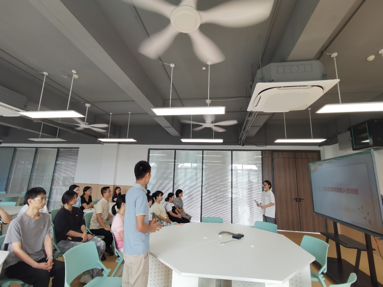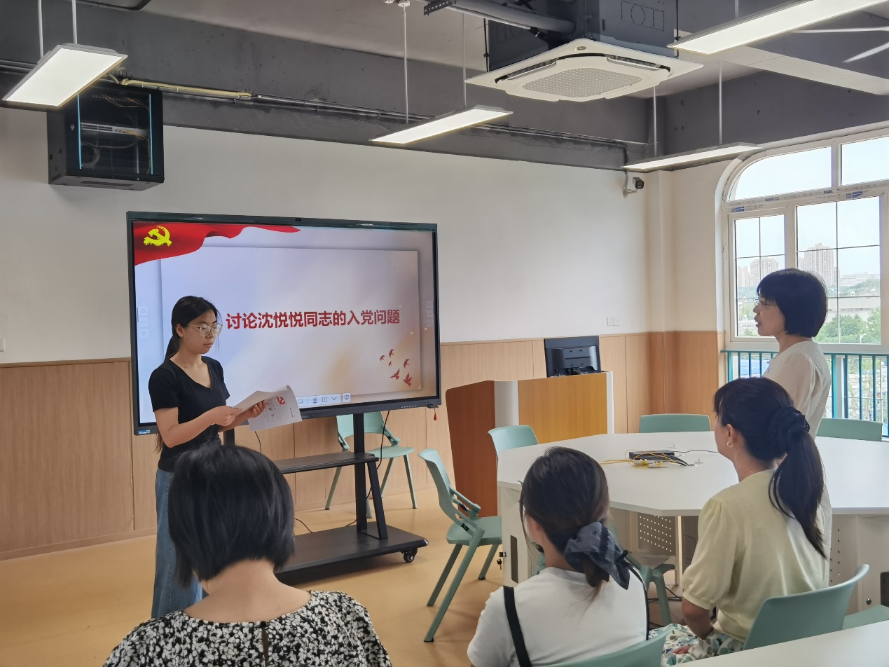 在充分讨论环节,与会党员结合日常观察,对三位同志的优点、缺点都做出了客观评价,认为其已具备共产党员的基本条件。经无记名投票表决,支部12名正式党员全票同意接收李紫卉、沈悦悦、雷蕾三位同志为中共预备党员。
