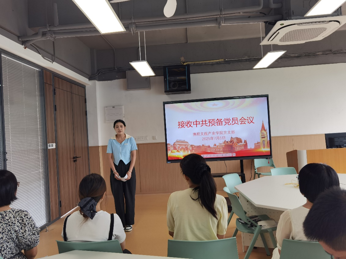 2025年7月1日,携程文旅产业学院党支部召开党员大会,专题讨论并审议李紫卉、沈悦悦、雷蕾三位同志的入党问题。支部全体正式党员参会,会议由支部书记赵丽红主持。