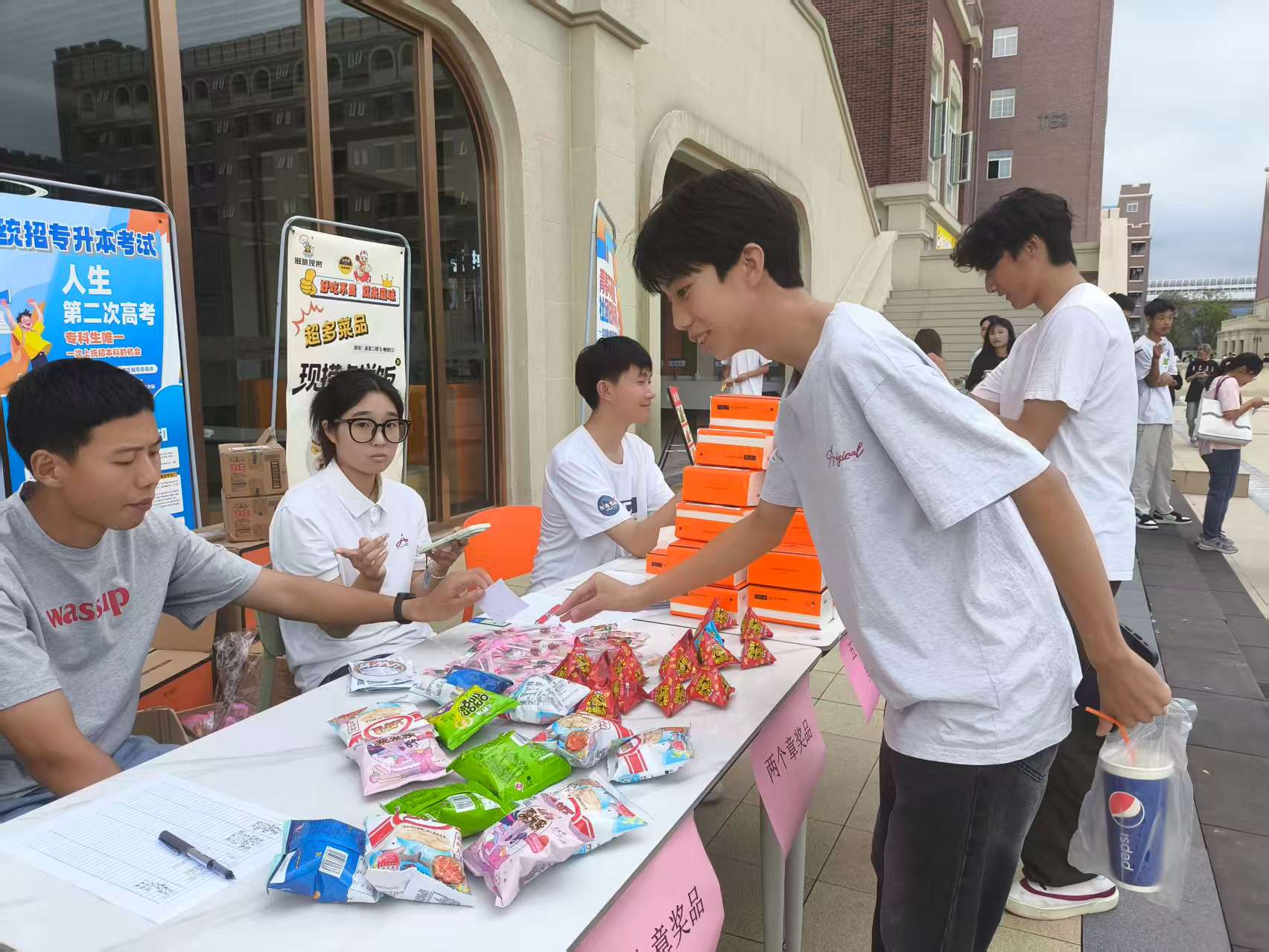 除了传统游戏,游园会还有许多互动环节,让同学们在轻松的氛围中交流互动。大家三五成群,有的在参与趣味问答,有的在体验手工制作,现场一片热闹景象。同学们在活动中互相协作,分享快乐,增进了彼此的了解和友谊。