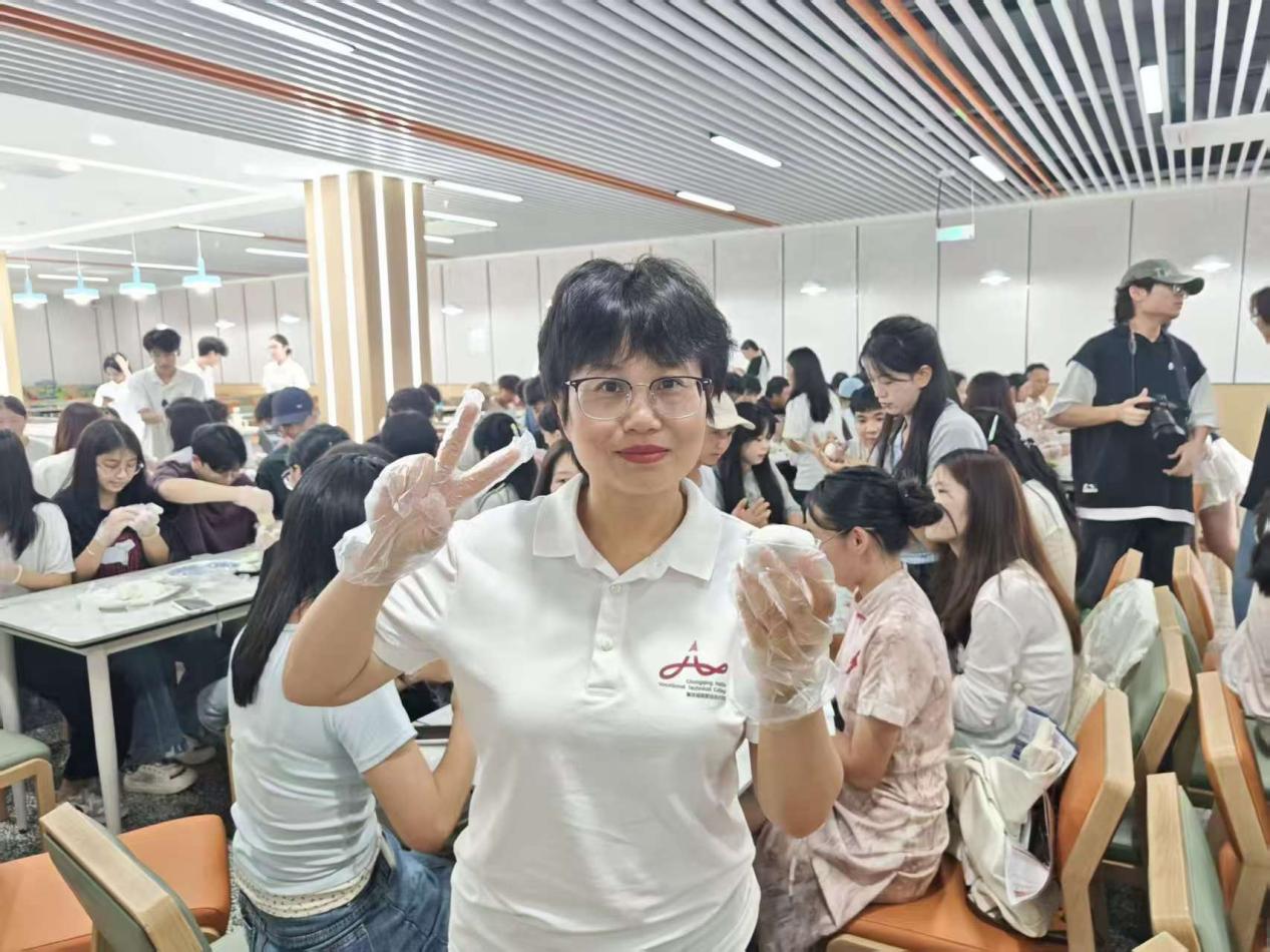 辅导员胡静娴记录下同学们的创作瞬间:“看到大家从手忙脚乱到熟练操作,从独自尝试到互助合作,真切感受到劳动教育的意义。”活动中,师生们不仅完成了80余块月饼的制作,更在协作中增进了感情,不少同学将亲手制作的月饼包装成礼盒,准备寄给远方的家人。