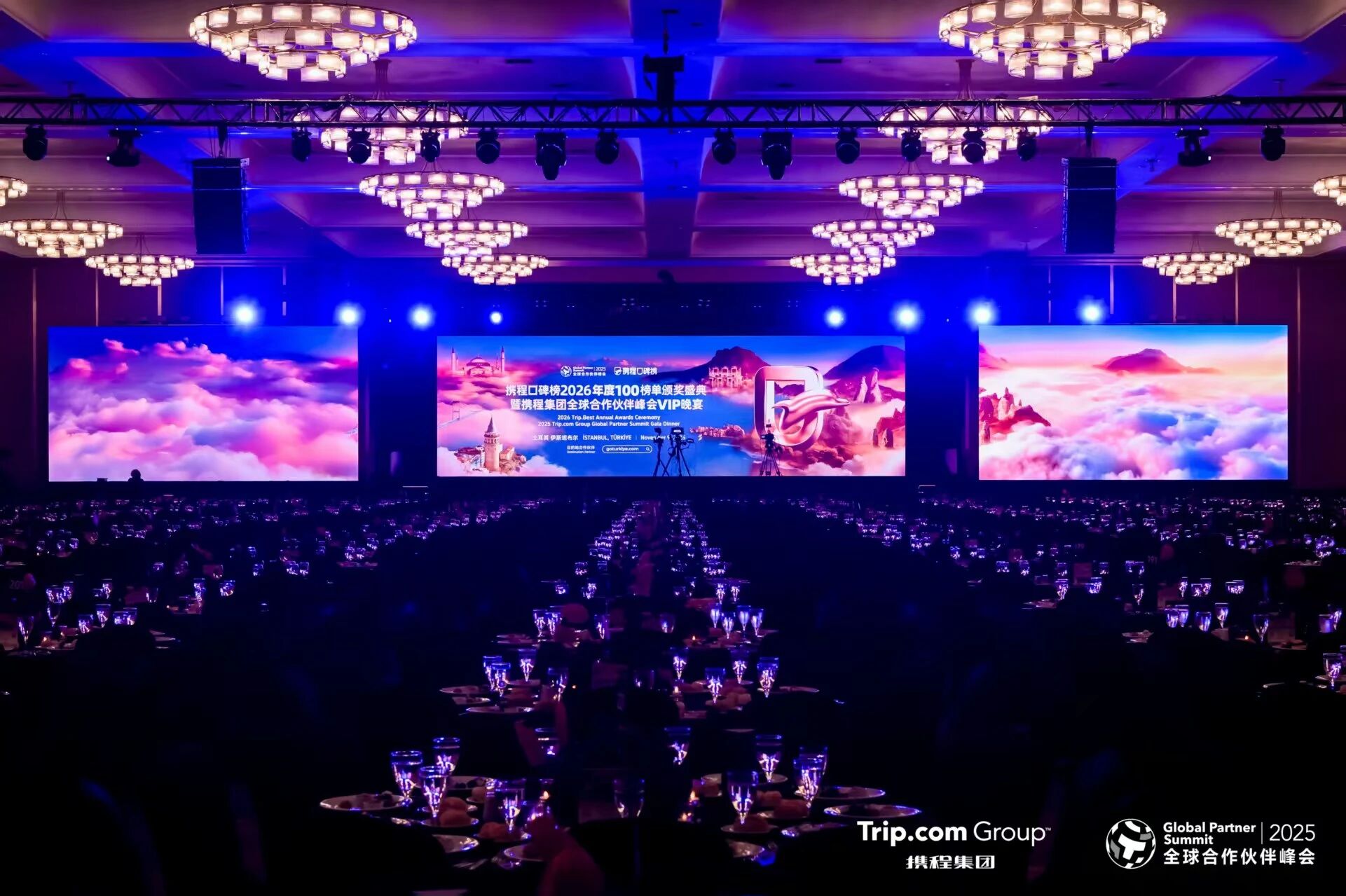 2025年11月9日,以“寰宇同行 共绘新景”为主题的携程集团全球合作伙伴峰会在土耳其伊斯坦布尔隆重举行。本次峰会汇聚了全球旅游业界的领袖与精英,土耳其文化和旅游部副部长塞达尔,世界旅游联盟候任副主席兼秘书长郑浩,中国驻伊斯坦布尔总领事魏晓东,携程集团董事局主席梁建章、首席执行官孙洁、集团高管及全球合作伙伴代表等2300余人参会。本次峰会汇聚了全球旅游业界的权威代表与先锋企业,学校受邀出席盛会,并荣获携程集团颁发的“2025年度卓越合作伙伴”奖,成为本年度携程集团全球合作伙伴中唯一获此殊荣的高校。