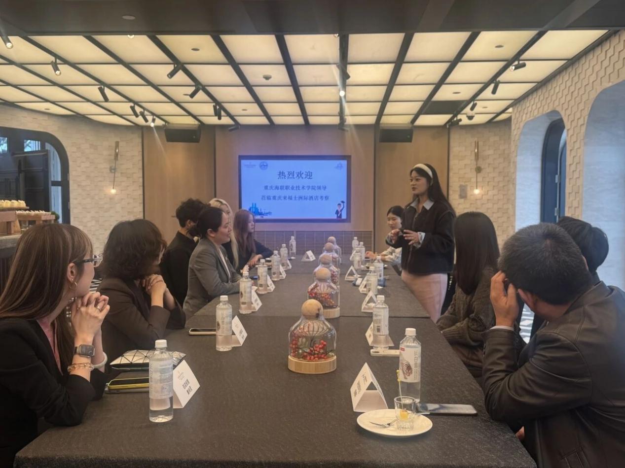 酒店驻店经理曾玲灵对我校一行的到来表示热烈欢迎,并详细介绍了酒店的发展历程、品牌理念、人才需求及员工职业发展体系。她高度肯定了我校在培养应用型人才方面取得的成果,并表示希望双方结合时代发展方向加强合作交流,实现互利共赢。刘瀚哲院长介绍了携程文旅产业学院的基本情况、专业设置和人才培养成果。他希望通过校企共建实践基地,实现课程内容与行业标准对接、教学过程与服务流程对接,为学生搭建从理论到实践、从校园到职场的畅通桥梁。