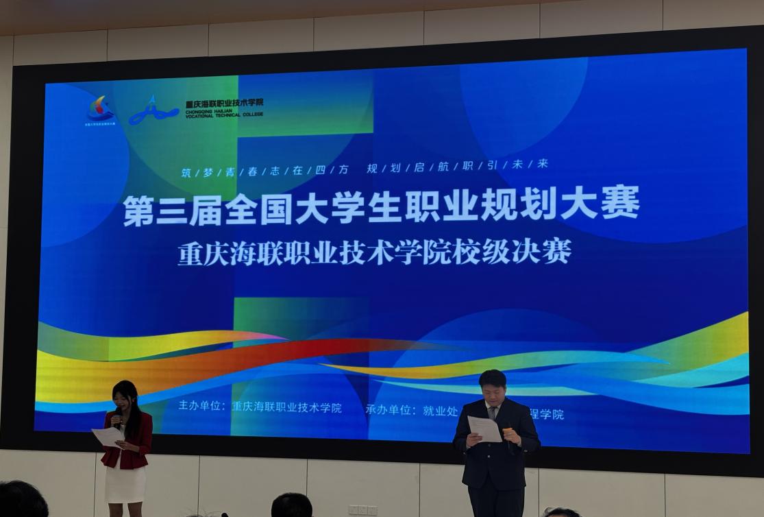 为引导青年学子树立科学的职业观与成才观,将个人理想融入时代发展大局,2025年11月13日,重庆海联职业技术学院职业生涯规划大赛决赛在学术报告厅成功举办。我校多位领导参加了本次活动,各学院师生代表到场观摩,一同见证了这场充满思辨与激情的青春盛事。