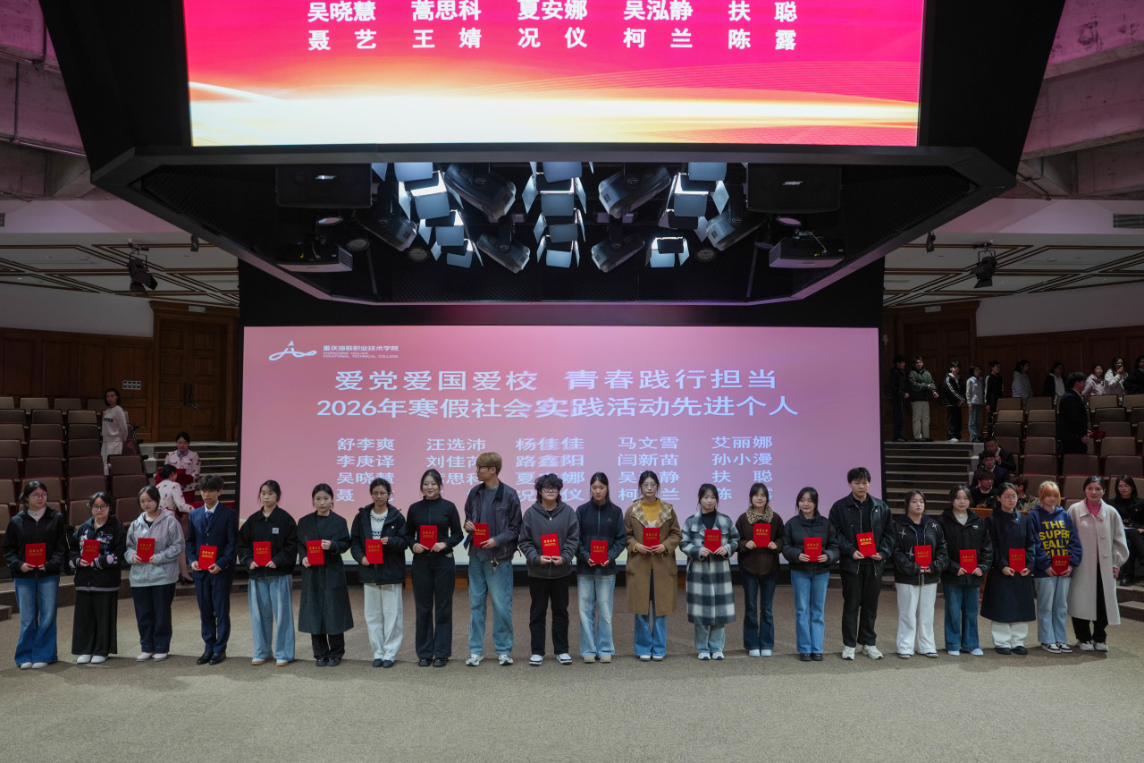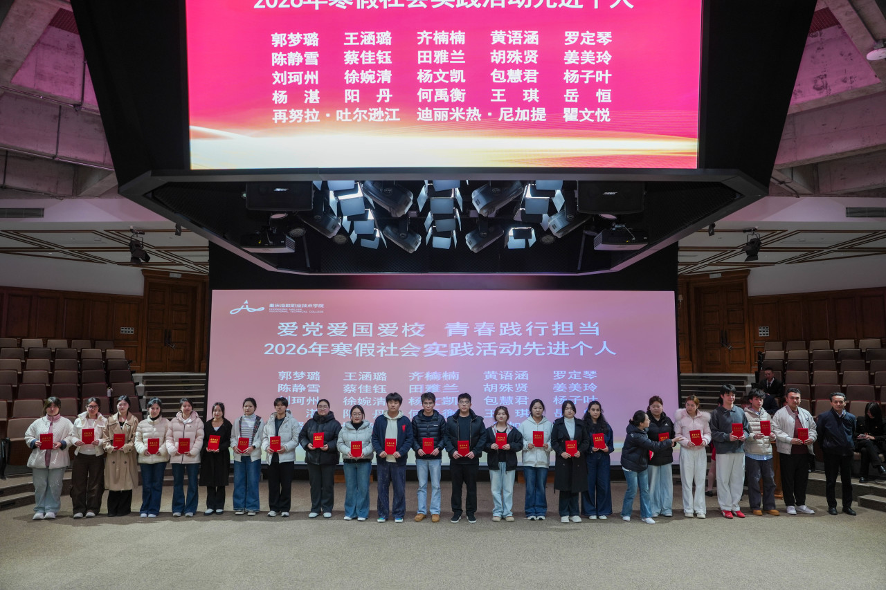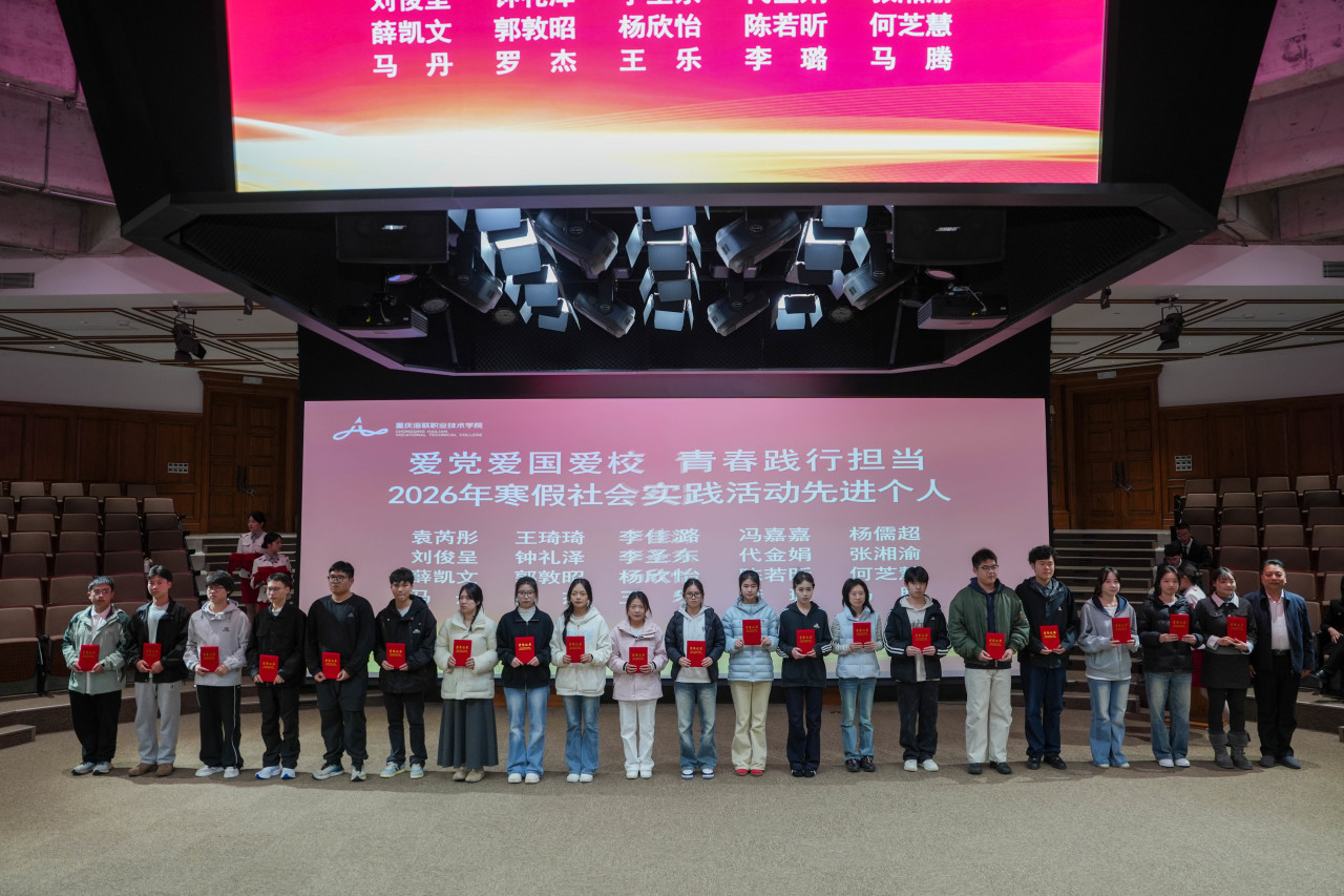 为深入学习贯彻党的二十大精神,落实团中央实践育人要求,进一步激发广大青年学生的爱国热情和社会责任感,3月17日,学校举行2026年“爱党爱国爱校”寒假社会实践活动表彰大会。学校校长李国、副校长陈飞、校长助理邓斯琼、相关职能部门负责人、各二级学院党支部书记、辅导员及学生代表参加大会。