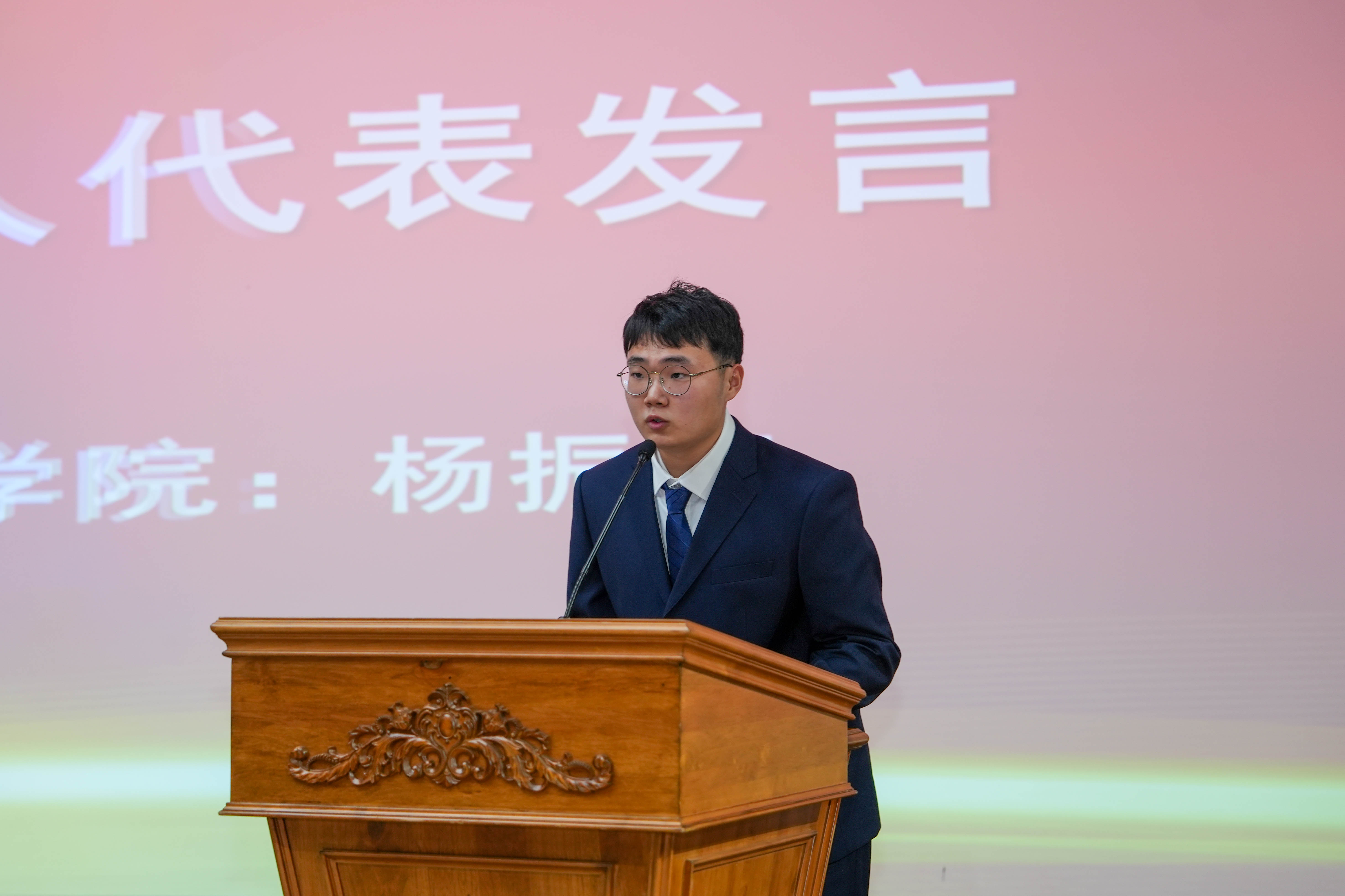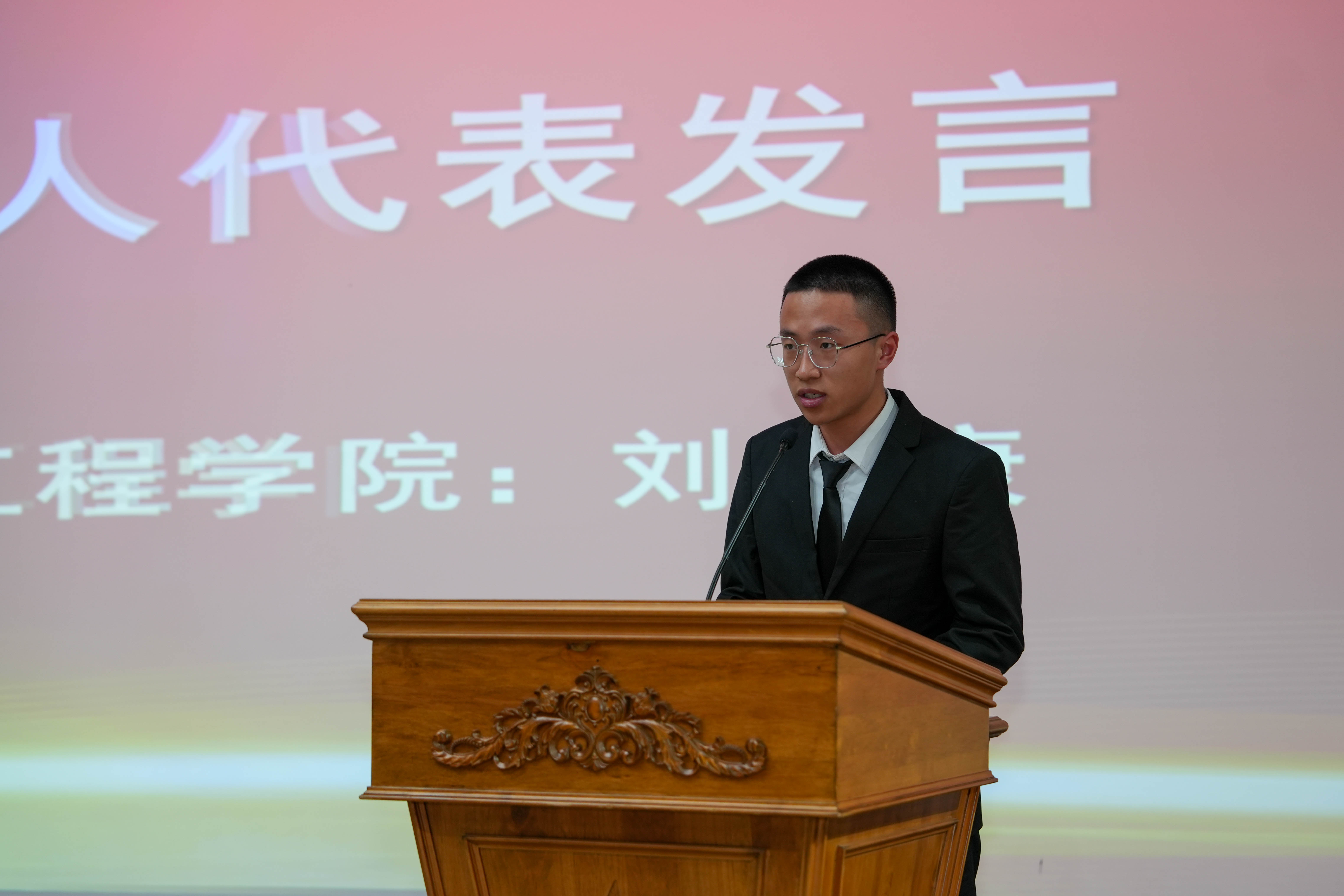 来自智能车辆工程学院的刘存康同学和公共事务学院的杨振钰同学作为先进个人代表发言。他们结合自身经历,分享了在社会实践中的收获与感悟,并表示将继续努力,在实践中明确责任和方向,用行动书写新时代青年的青春担当。