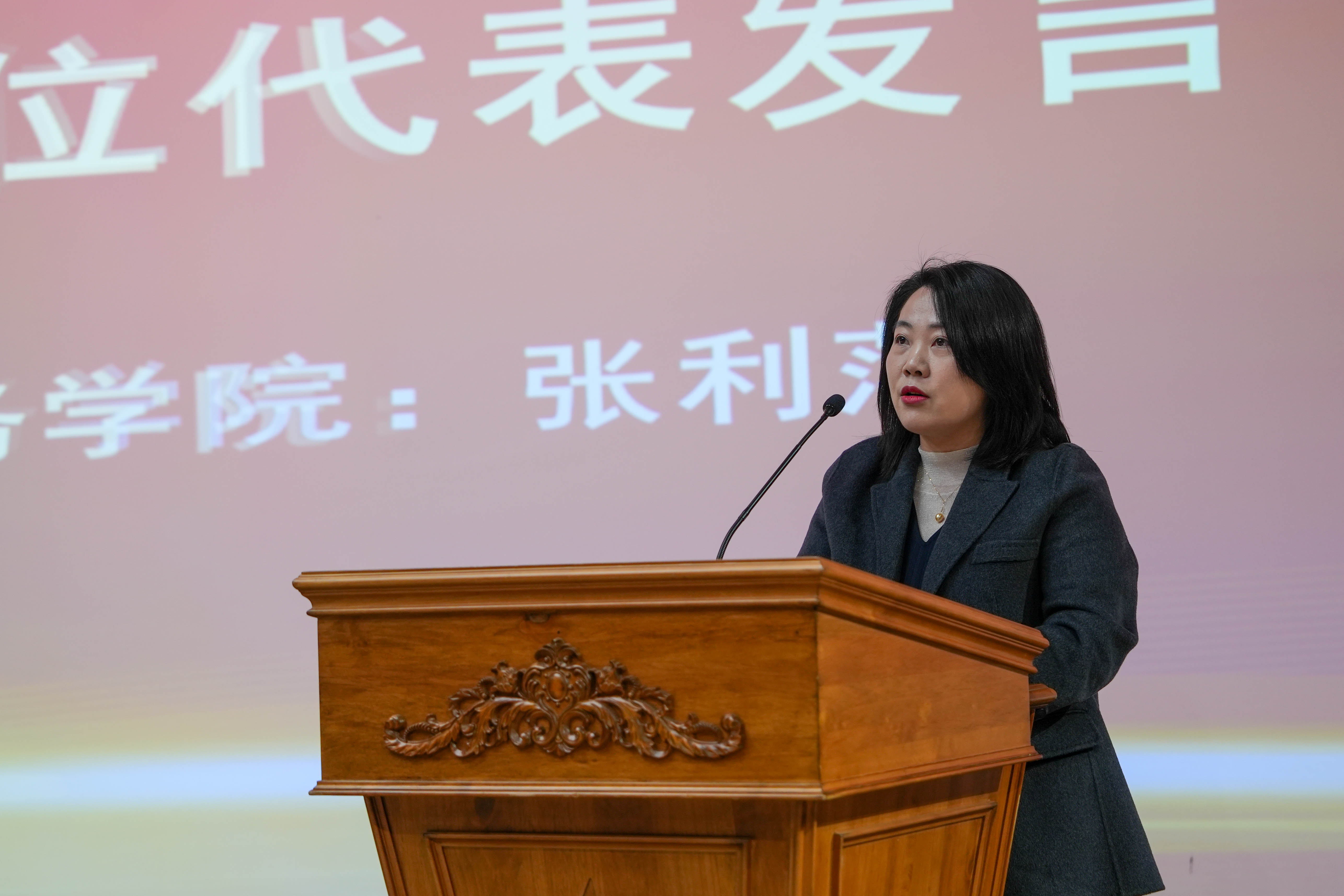 公共事务学院副院长张利萍作为先进单位代表介绍了学院组织开展寒假社会实践活动的经验与成效。她表示,荣誉的取得离不开学校领导的支持和全体师生的共同努力,未来学院将继续深化实践育人机制,引导更多学生在服务社会中发现自我、实现价值。